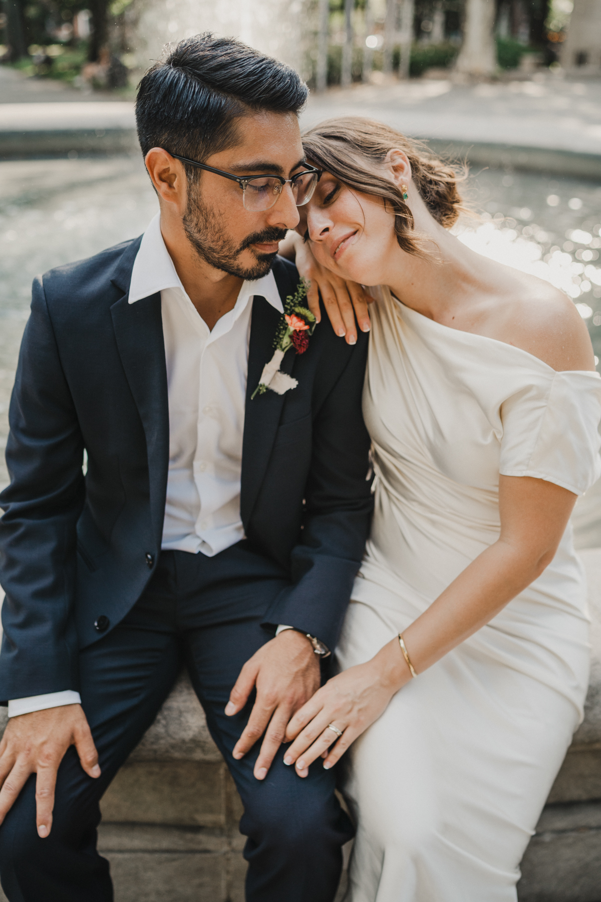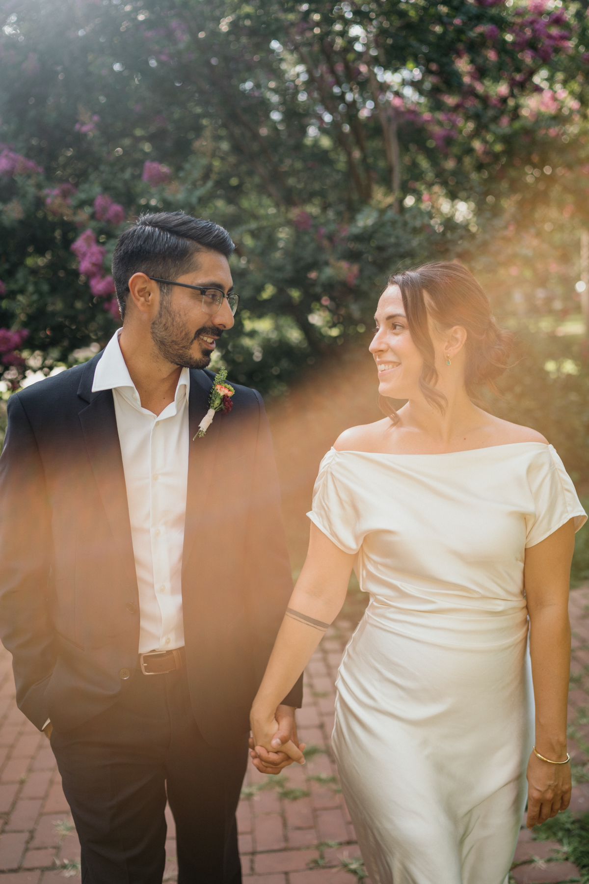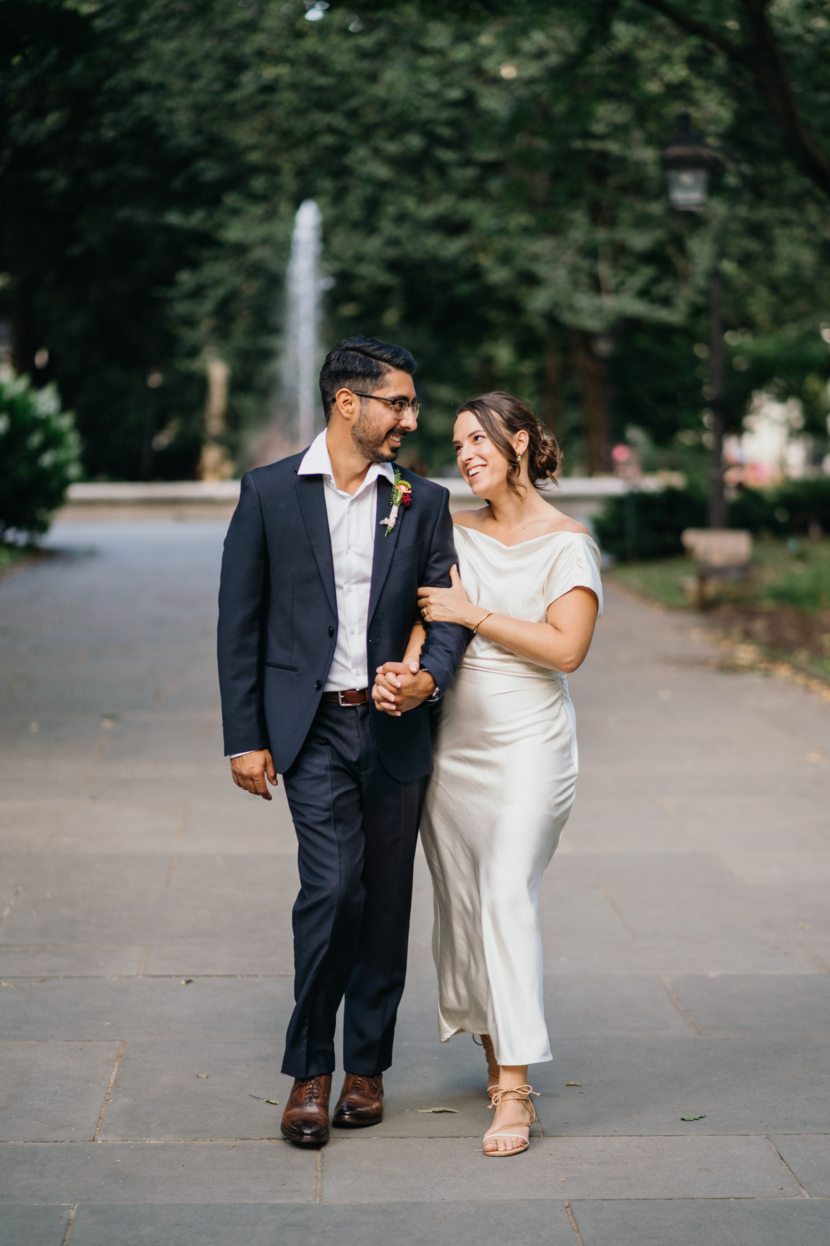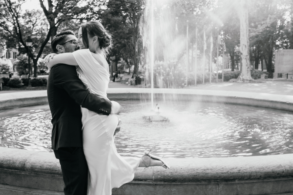 Afterward, we hopped on a bus to the 18th Century Gardens, where the couple exchanged vows surrounded by greenery. From there, we made our way into the city for the quintessential City Hall elopement photos. Broad Street gave us that perfect mix of editorial and documentary moments—Bri and Fareed against the backdrop of Philly’s most iconic landmark.