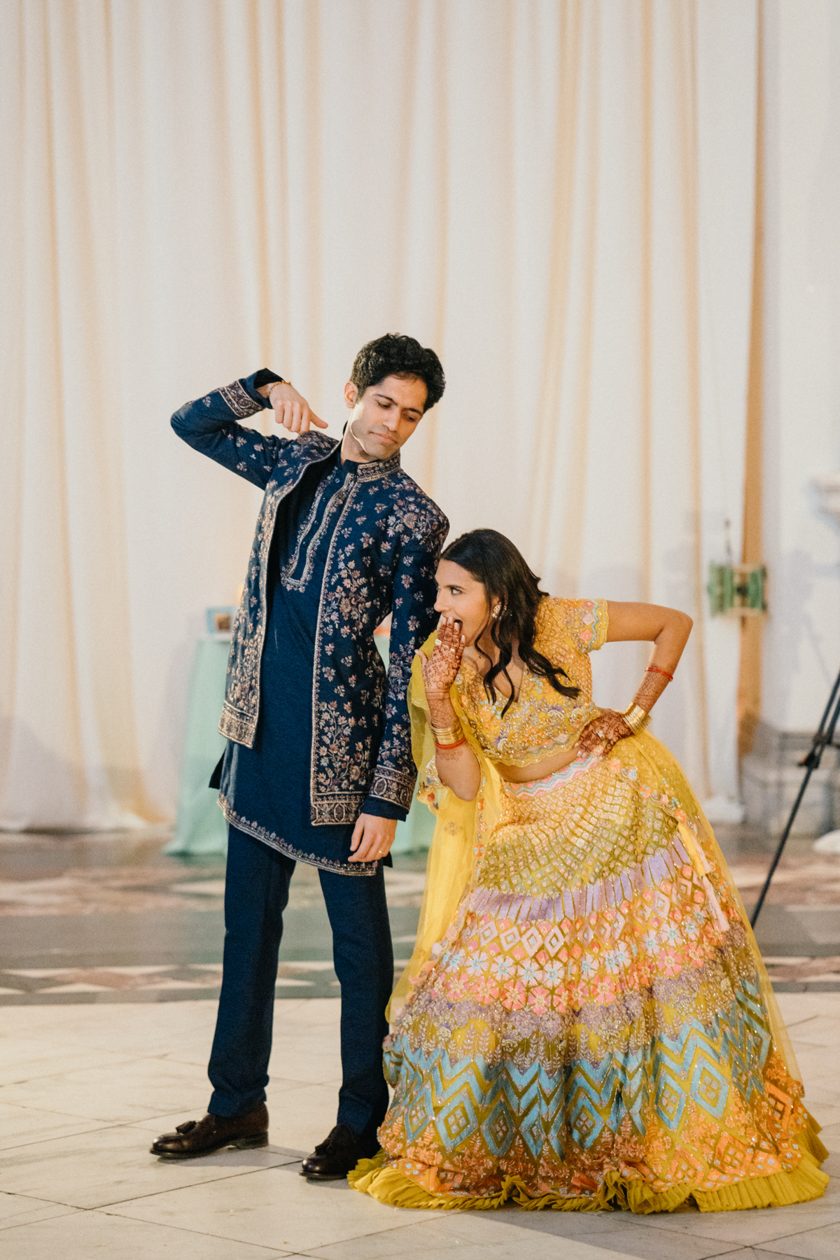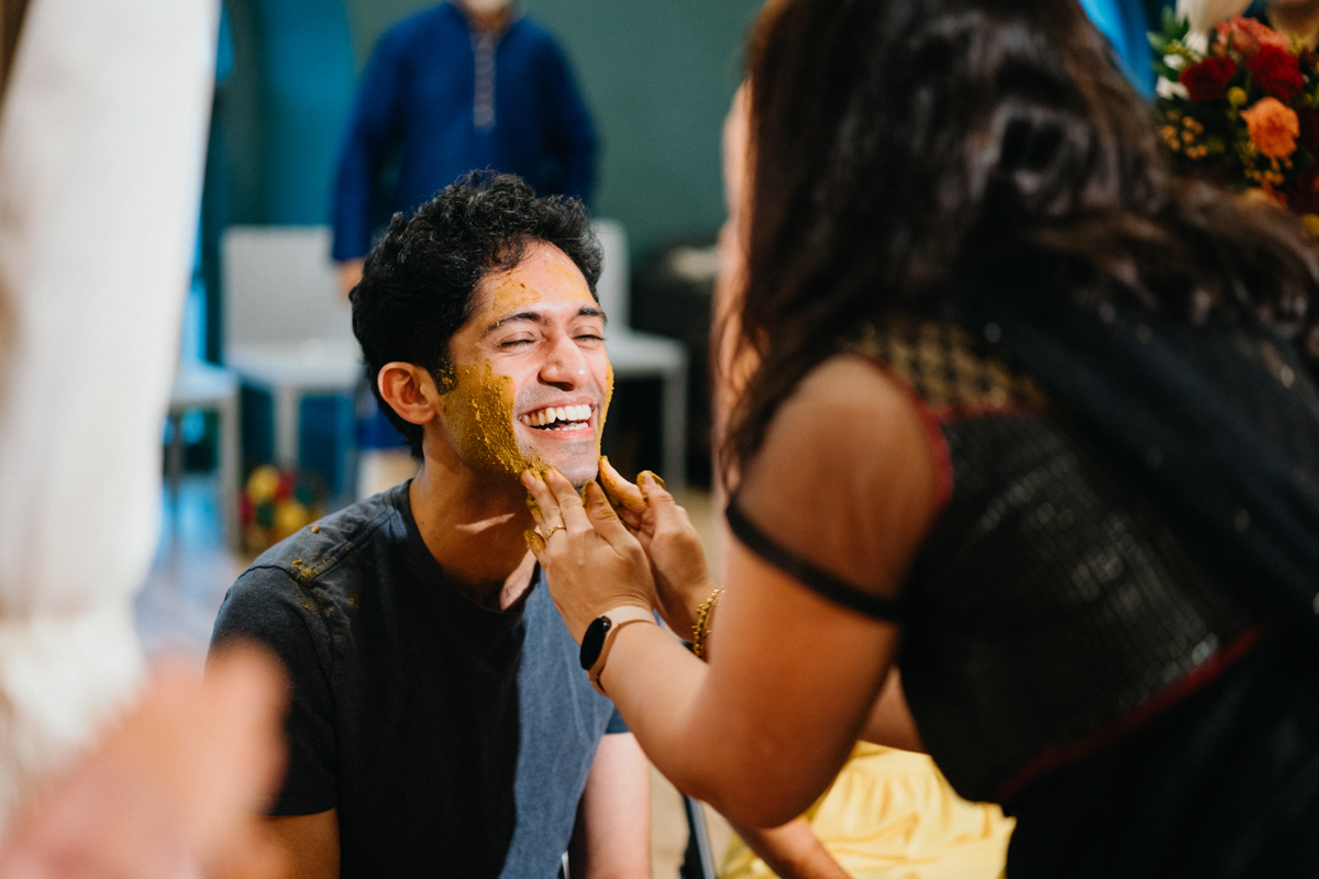 Friday’s Haldi was the perfect counterbalance to the formality of Thursday. If you’ve never experienced a Haldi ceremony, picture this: laughter, turmeric paste flying, family members trying not to cry while also joining in the silliness. It’s playful, but it can also be so emotional, especially for parents and close relatives who are truly feeling the weight of the moment. We love this part of Indian weddings because it’s all heart. You see tears, you see joy, and you see everyone getting messy together.
