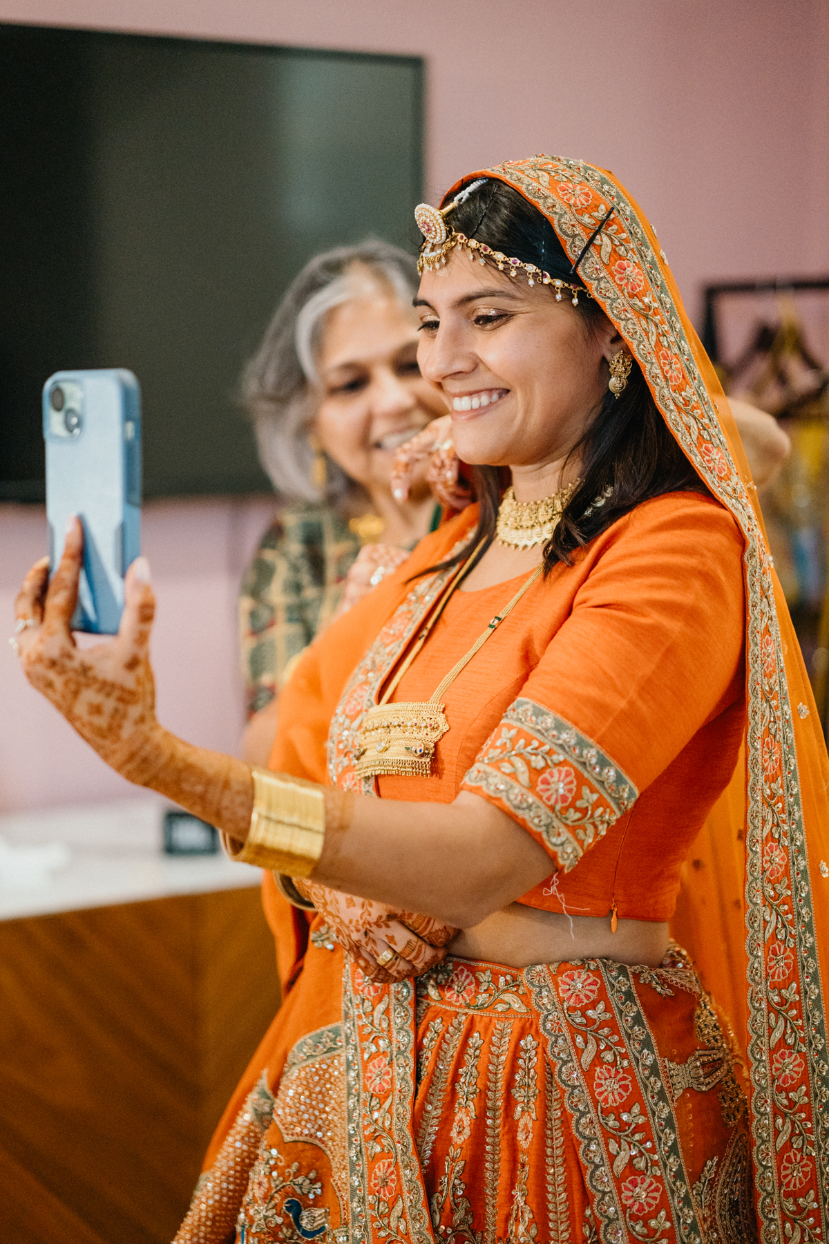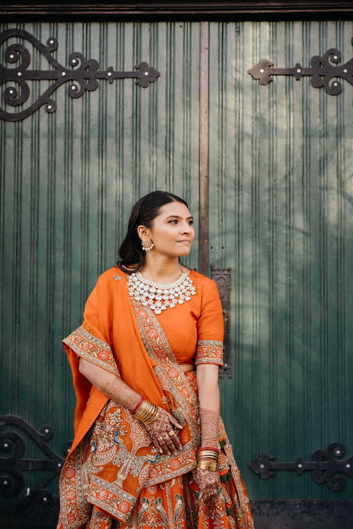 Rahkee wore a vibrant orange lehenga that practically glowed against the historic architecture of The Deacon. Her jewelry carried stories of generations, pieces passed down through family, layered with history and sentiment. Every detail of this night connected past and present in the most beautiful way.