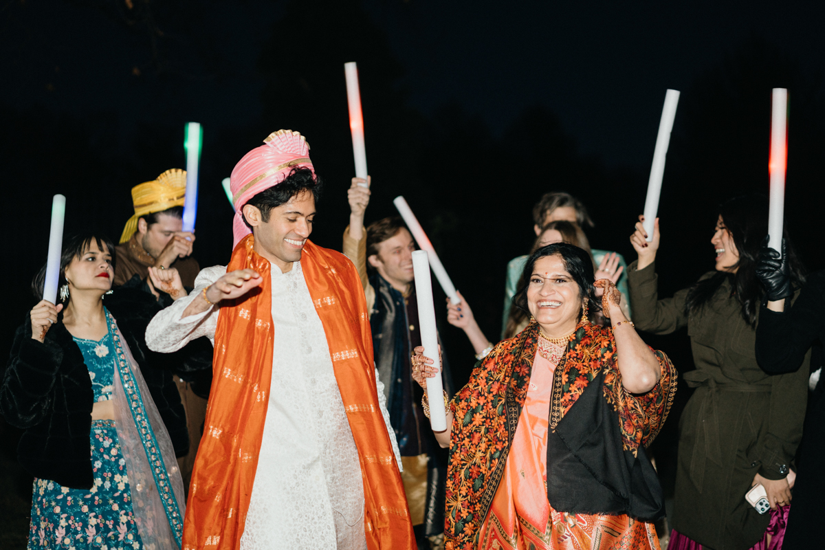 Saturday was all about celebration on a bigger scale, and the Please Touch Museum could not have been a more perfect stage. Day three of this Philadelphia Indian Wedding kicked off with something unique: a dual baraat. Traditionally, the baraat is the groom’s procession, but Rahkee and Suraj made it their own. Music and dancing filled the crisp fall air outside the museum as the crowd lit up the street with glow sticks.