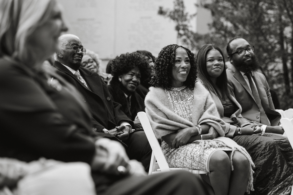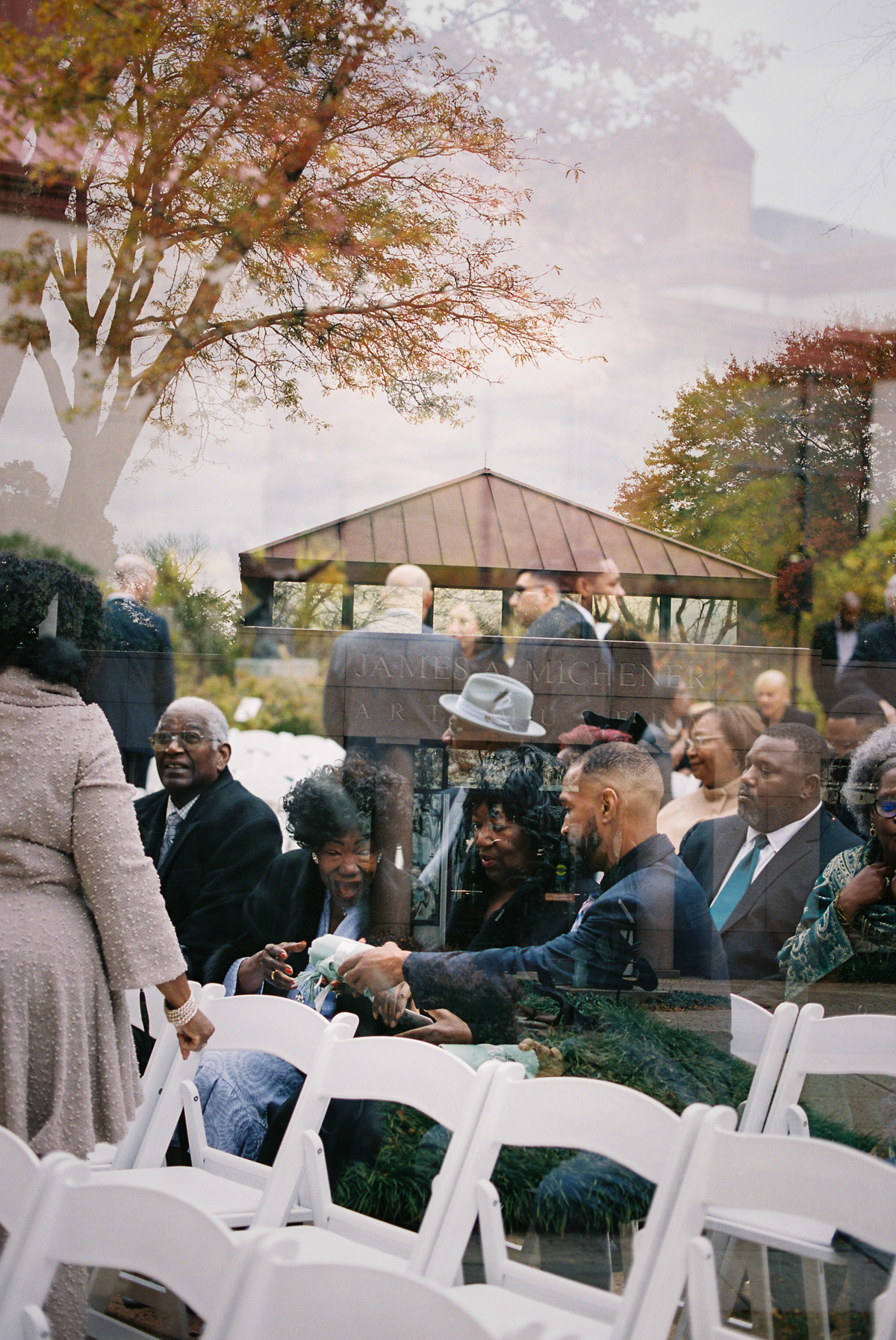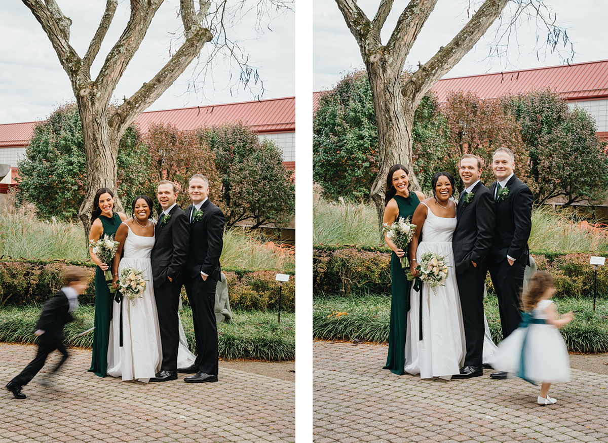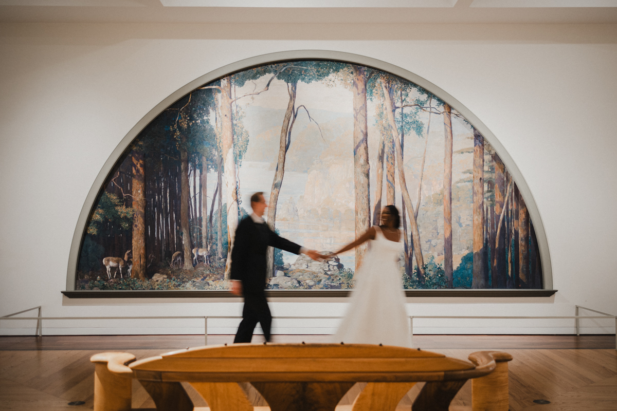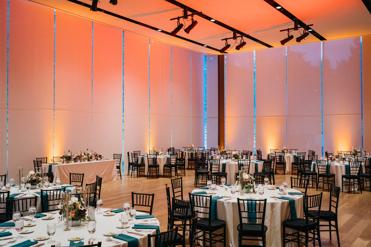Cocktail hour carried an autumn coolness, but the energy never chilled. Guests gathered in the museum’s glass reception space, a room that feels alive because of the people in it. Brooke and Robert built a day that held humor and sincerity. That is always the kind of celebration we hope to photograph.