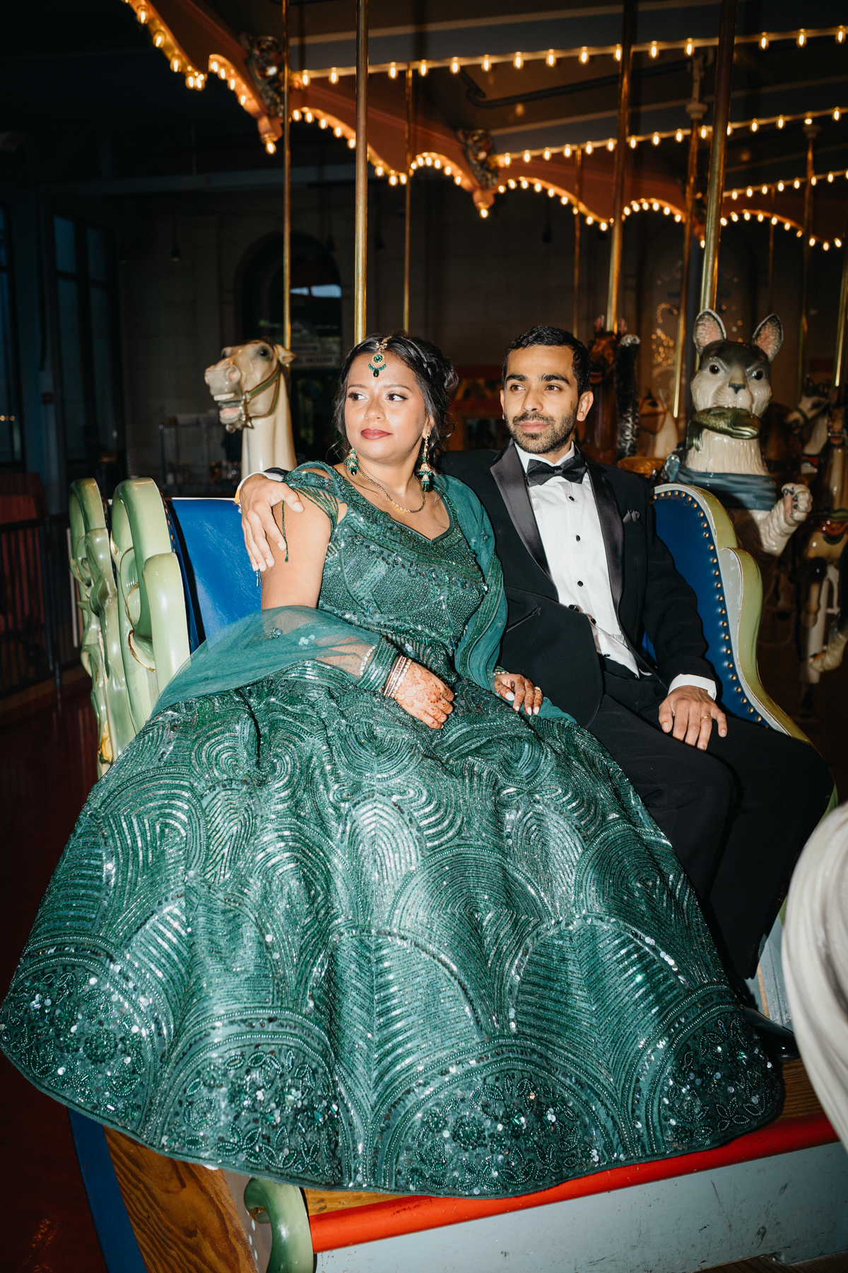 After their ceremony, the celebration shifted into a new chapter. Pooja changed into a bold green gown, and the party moved to the Please Touch Museum. The energy stayed high, but the day also made room for the meaningful stuff too heartfelt speeches, family dances that crossed generations, and moments of humor tucked into the exhibits and displays. Kids and grandparents, cousins and college friends, everyone found their place in the night. Pooja and Anand even stole a few minutes to wander the museum together, laughing at the nostalgia and playfulness around them. It felt unscripted, alive, and true to them.